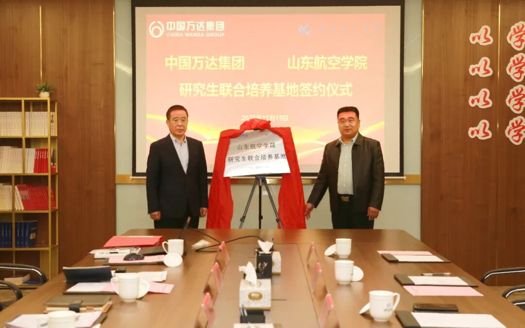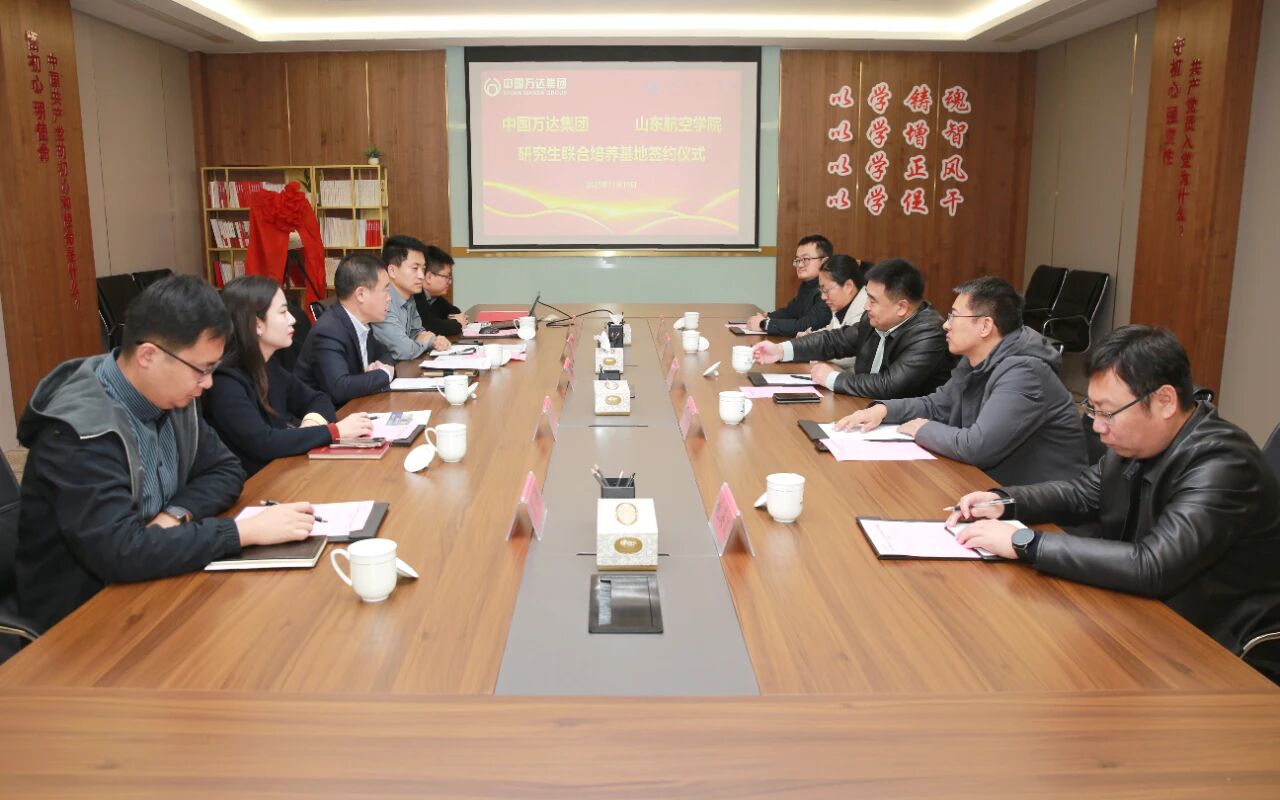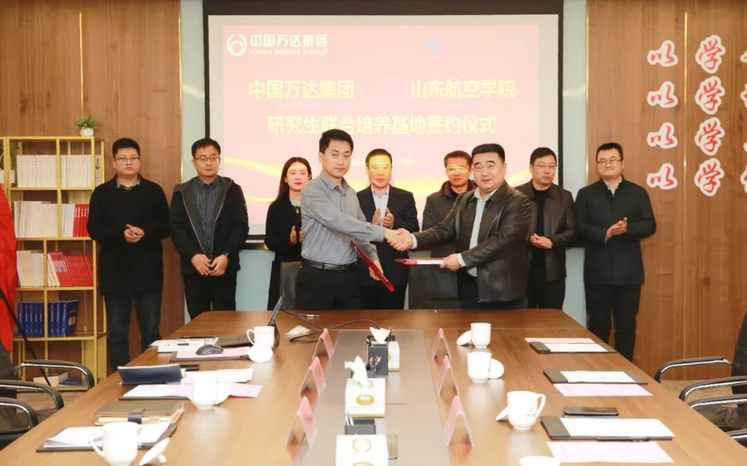11月19日,山东航空学院与万达集团研究生联合培养基地签约仪式在万达集团展览馆初心堂顺利举行。万达集团轮值执行总裁巴树山、院长杨仲年出席签约仪式,万达集团人力资源部总监许新鹏主持仪式。